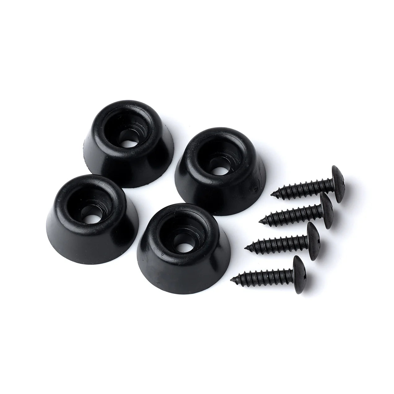 An industry standard option for cutting board bumpers to keep boards from slipping while elevating the bottom of the board from wet surfaces. The Small 1/2" size option is perfect for any cutting board, while the Large 1" size is great for hefty butcher blocks or charcuterie boards with a larger surface. Feet are made of a sturdy rubber-like plastic and comes with black oxide stainless-steel screws.